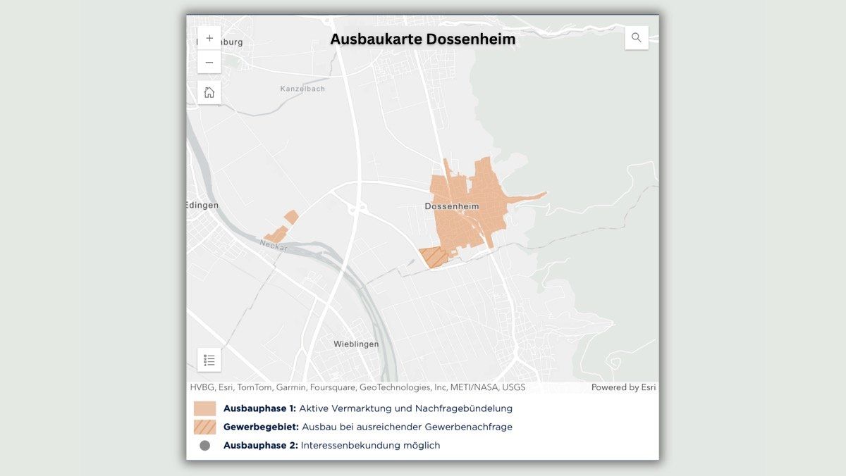 Obwohl die erforderliche Nachfragequote von 35 Prozent im Gesamtgebiet Dossenheim für den flächendeckenden Ausbau bisher nicht erreicht wurde, startet nun parallel zum Endspurt der Vorvermarktung die Planung für den Start der konkreten Baumaßnahmen in den definierten Startgebieten. Diese sind derzeit für Anfang 2025 vorgesehen und umfassen in der Gesamtkommune rund 45 km Tiefbau und ein zweistelliges Millioneninvestment von Seiten der Deutschen GigaNetz.