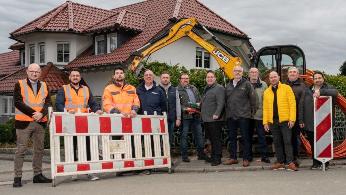 Tiefbauarbeiten sind die notwendige Voraussetzung bei vielen infrastrukturellen Bauvorhaben. Sie sind es auch, die den Einzug von Glasfaser-Internet in einer Kommune sichtbar machen. Aktuell beginnt genau das in Waldbrunn – parallel zu den Nachbargebieten Dornburg und Elbtal. Zum symbolischen Spatenstich kamen gestern Bürgermeister Peter Blum in der Laubstraße des Ortsteils Hausen unter anderem mit Nico Weingärtner – Projektleiter Bau bei der Deutschen GigaNetz GmbH – sowie weiteren Vertreter/innen der Gemeinde und des Telekommunikationsunternehmens zusammen.