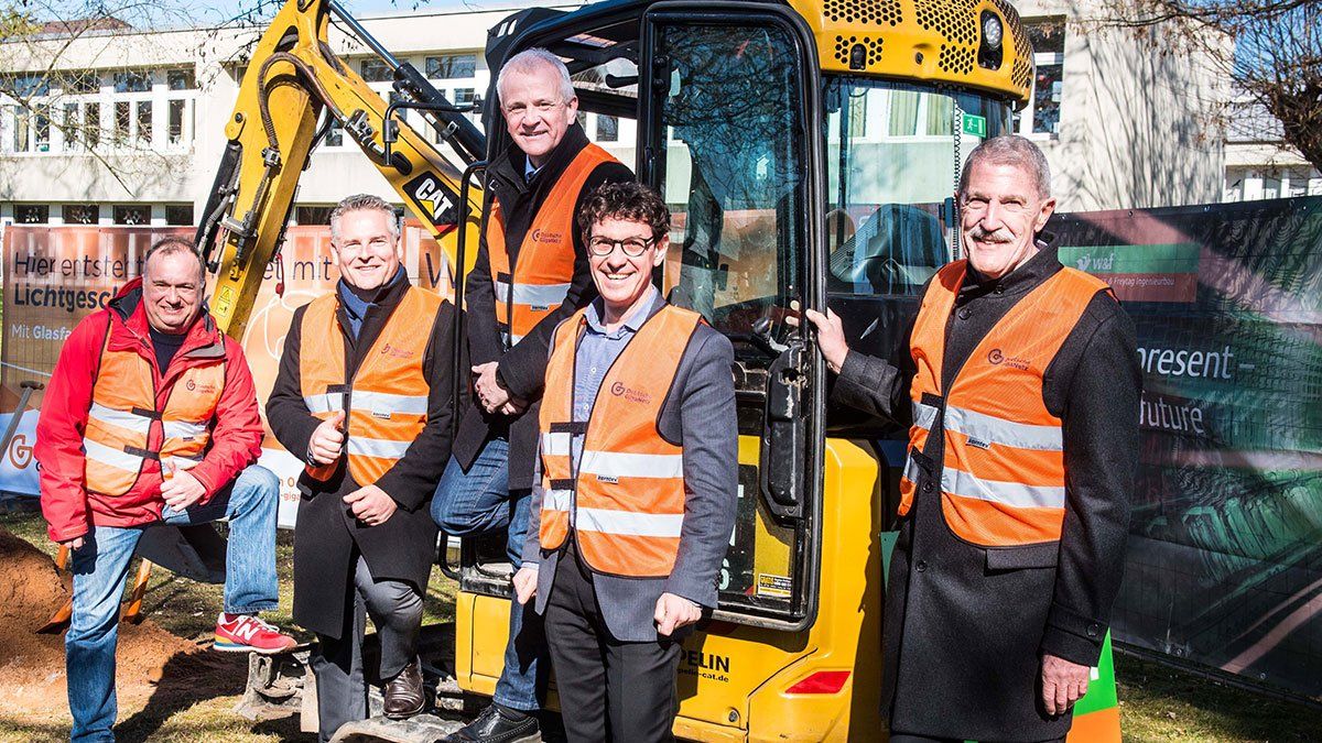 Internet in Lichtgeschwindigkeit inklusive Telefonie, optimales digitales Fernsehen und störungsfreie Videoanrufe: Die Erschließung der Gemeinde Großkrotzenburg mit der Glasfasertechnologie macht es möglich. Zusammen mit der Geschäftsführung des für den Ausbau verantwortlichen Unternehmens, die Deutsche GigaNetz GmbH, fiel heute der offizielle Startschuss mit dem symbolische Spatenstich. Bürgermeister Thorsten Bauroth: „Zukunftssichere Glasfaser wird die nächsten Jahrzehnte bestimmen. Es freut mich daher ungemein, dass wir für unsere Gemeinde solch ein Topspeed-Netz realisieren und damit die Voraussetzung für einen langfristig attraktiven Wirtschaftsstandort und Lebensmittelpunkt schaffen.“