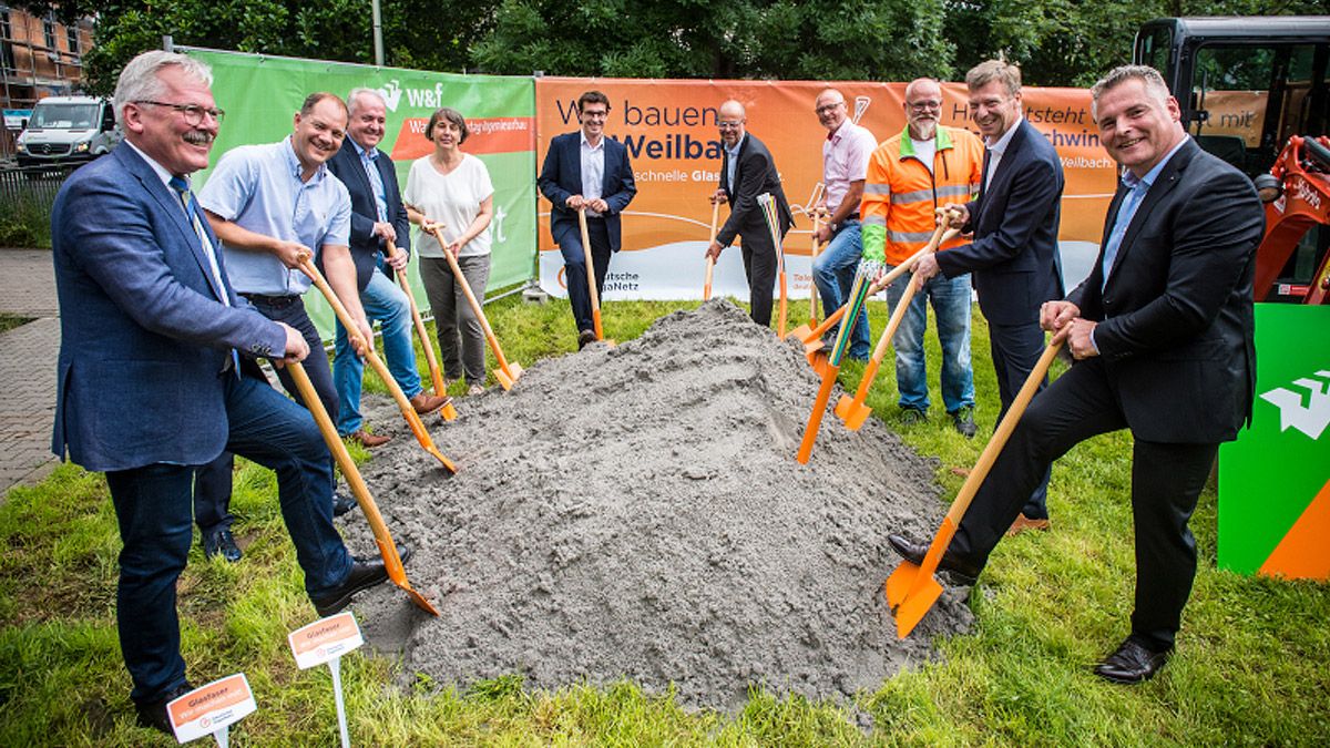 Internet in Lichtgeschwindigkeit inklusive Telefonie, optimales digitales Fernsehen und störungsfreie Videoanrufe: Die Erschließung der Region Flörsheim für die Glasfasertechnologie soll es möglich machen. Der Startschuss fiel jetzt in Weilbach: Zusammen mit der Geschäftsführung des für den Ausbau verantwortlichen Unternehmens, die Deutsche GigaNetz, fand heute der erste Spatenstich statt. Bürgermeister Dr. Bernd Blisch sagt: „Ich freue mich, dass wir hier in Weilbach die Weichen für ein Topspeed-Netz der Zukunft stellen. Die Digitalisierung schreitet mit hoher Geschwindigkeit voran. Unsere Aufgabe ist es, am Standort Voraussetzungen zu schaffen, damit die Bürgerinnen und Bürger digitale Möglichkeiten auch optimal nutzen können.“