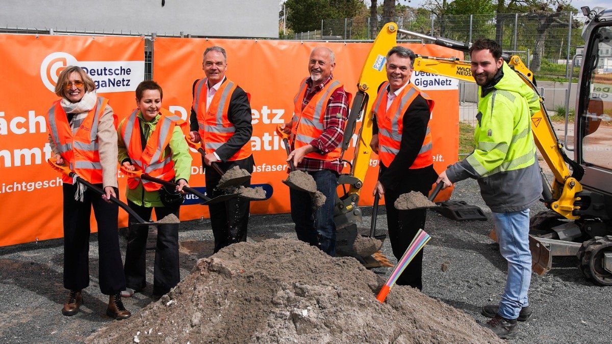 Ein Meilenstein für die digitale Infrastruktur Nauheims: Mit einem symbolischen Spatenstich hat die Deutsche GigaNetz GmbH gestern Mittag den Beginn der Bauphase für das neue Glasfasernetz in der Gemeinde gefeiert. Der Spatenstich fand auf dem Parkplatz zum Bürgersaal am Sportfeld 1a in Nauheim statt. Bis Anfang 2025 ist geplant, eigenwirtschaftlich – sprich ohne Fördermittel – etwa 3.000 Adresspunkte und damit rund 5.650 Wohneinheiten an das neue Netz anzuschließen. Bürgermeister Roland Kappes freut sich über die schnelle Umsetzung des Ausbauprojekts in Nauheim.