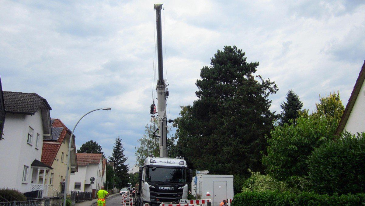 Der Glasfaserhauptverteiler wurde bereits fertig ausgestattet auf einem Schwerlast-Tieflader durch die Firma UTSolution angeliefert. Parallel wurde ein Mobilkran mit Kontergewichten bestückt, um die Last von über 20 Tonnen anheben zu können. Mitarbeitende der Deutschen GigaNetz waren vor Ort, um die beeindruckende Anlieferung und finale Stellung zu begleiten. Nach der erfolgreichen Stellung wird das Bauunternehmen im nächsten Schritt die Leerrohre für die spätere Glasfasereinführung anschließen und dabei entstandene Gräben wieder mit Erde verfüllen.