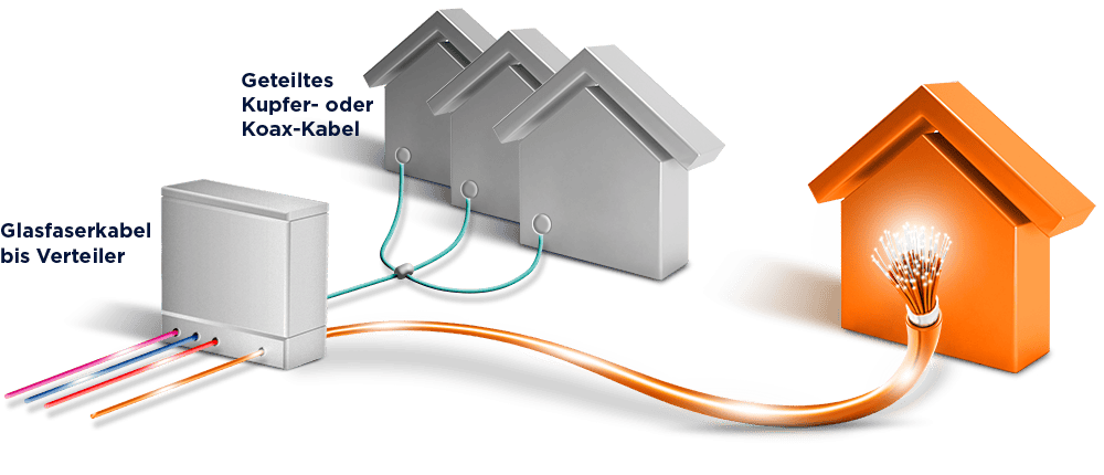 Anders als bei Kupfer-, DSL oder Koaxialkabeln bleibt die Übertragungsgeschwindigkeit über Glasfaser unabhängig von Entfernung und Anzahl der Nutzerinnen und Nutzer stabil hoch.