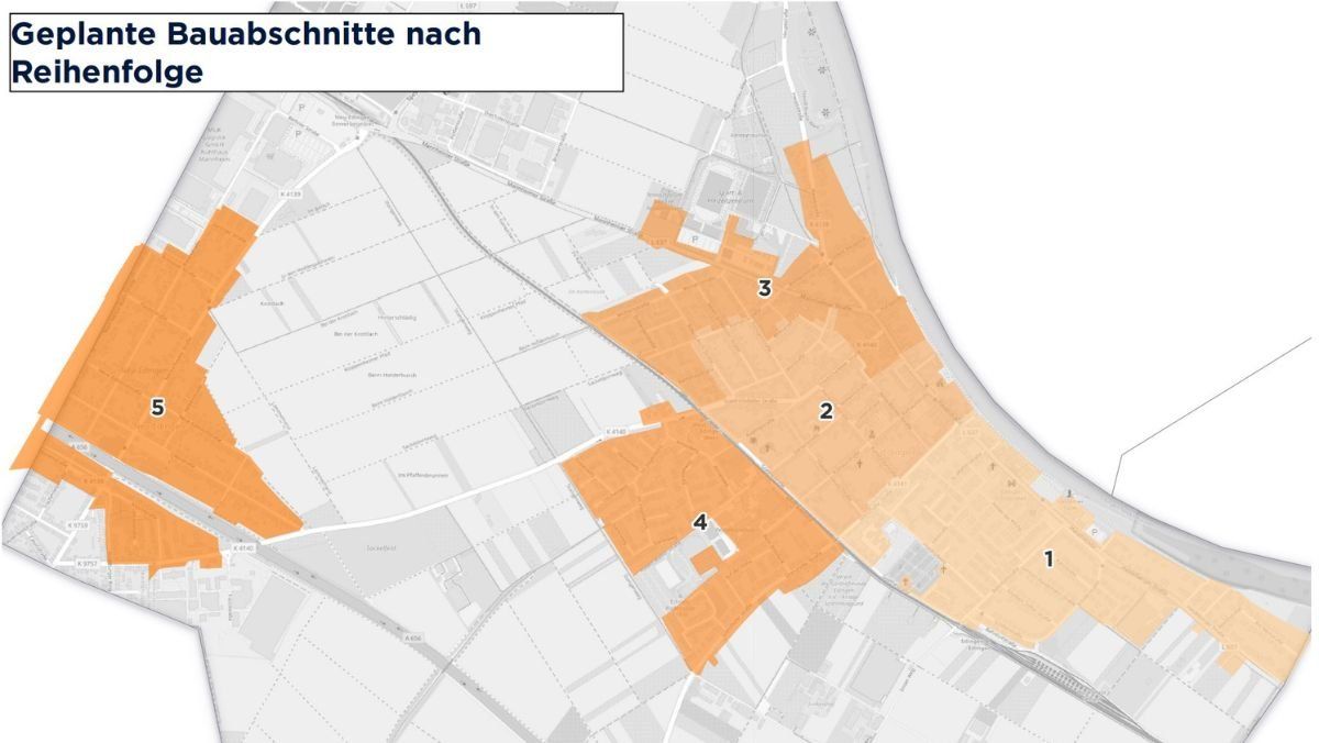 Wie auf der Landingpage der Kommune deutsche-giganetz.de/edingen-neckarhausen dargestellt, hat die Deutsche GigaNetz das Gesamtgebiet in fünf Teilgebiete (Ausbaugebiet 1-5) unterteilt. Die Durchführung der Bauarbeiten wird nach dieser Aufteilung erfolgen.