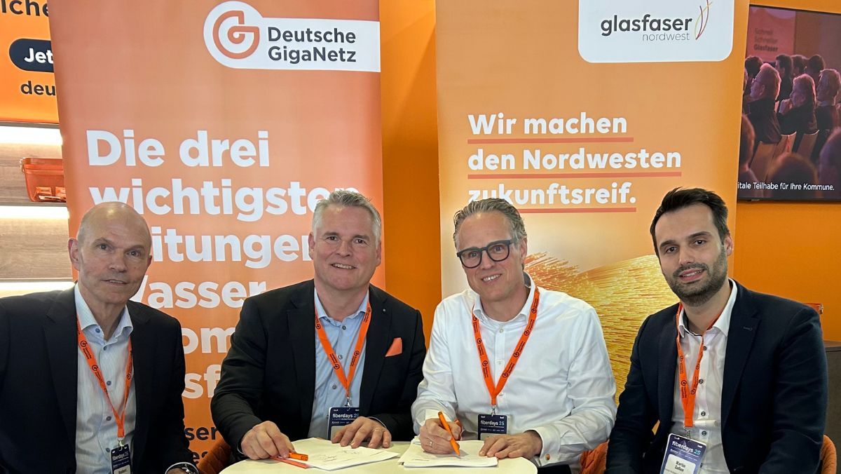 Im Rahmen der diesjährigen Fiberdays haben die Deutsche GigaNetz und die Glasfaser Nordwest ihre langfristige Zusammenarbeit nun mit der offiziellen Unterzeichnung einer gemeinsamen Kooperationsvereinbarung besiegelt. Mit dieser Partnerschaft leisten die beiden Unternehmen einen entscheidenden Beitrag für einen effizienten Glasfaserausbau in der Stadt Bremen und versorgen Bürgerinnen und Bürger schnell und umfassend mit der zukunftsfähigen Glasfaser-Technologie. So erhält die Deutsche GigaNetz im Rahmen der Kooperationsvereinbarung neben dem eigenen Netzausbau nun als weiterer Open Access-Partner Zugang zum leistungsstarken FTTH-Netz der Glasfaser Nordwest. Beide Unternehmen planen, ab der zweiten Jahreshälfte mit der schrittweisen Anbindung aller bestehenden Kundinnen und Kunden der Deutschen GigaNetz in Bremen-Nord an das Glasfasernetz zu beginnen.