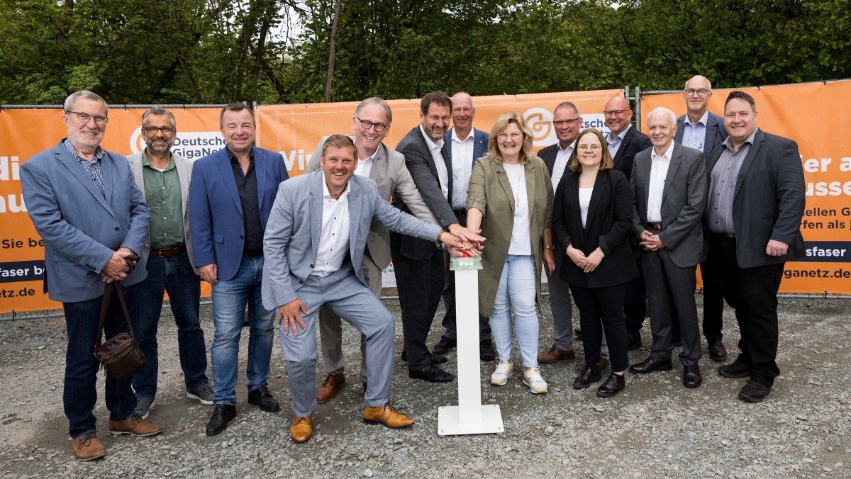 Sowohl der geförderte als auch der eigenwirtschaftliche, flächendeckende Glasfaserausbau der Deutschen GigaNetz GmbH im Landkreis Limburg-Weilburg schreiten weiter voran. Im geförderten Glasfaserausbauprojekt wurde nun ein bedeutender Meilenstein erreicht: Gewerbetreibende in Weilmünster-Ernsthausen dürfen sich als Erste über den schnellen Breitbandzugang der Deutschen GigaNetz freuen. Das Hamburger Telekommunikationsunternehmen erschließt im Landkreis Limburg-Weilburg insgesamt 30 Gewerbegebiete mit rund 1.600 Unternehmen und Haushalten mit Glasfaser bis in die Gebäude (FttH – Fiber to the Home). In einer europaweiten Ausschreibung hatte die Deutsche GigaNetz Ende 2021 den Zuschlag für das Ausbauprojekt erhalten, das mit einem Zuschuss von rund 16 Millionen Euro durch Bund, Land, Landkreis und den kreisangehörigen Kommunen gefördert wird.Michael Köberle, Landrat des Landkreises Limburg-Weilburg, Mario Koschel, Bürgermeister der Gemeinde Weilmünster, Wolfram Thielen, Geschäftsführer und Mitgründer der Deutschen GigaNetz sowie zahlreiche Vertreterinnen und Vertreter angehöriger Kommunen waren beim gestrigen „Go Live“ am Parkplatz gegenüber von Schneider Logistik am Bahnhofsweg 8 dabei. Das Projekt hat Signalwirkung für die Gemeinde und den gesamten Landkreis.