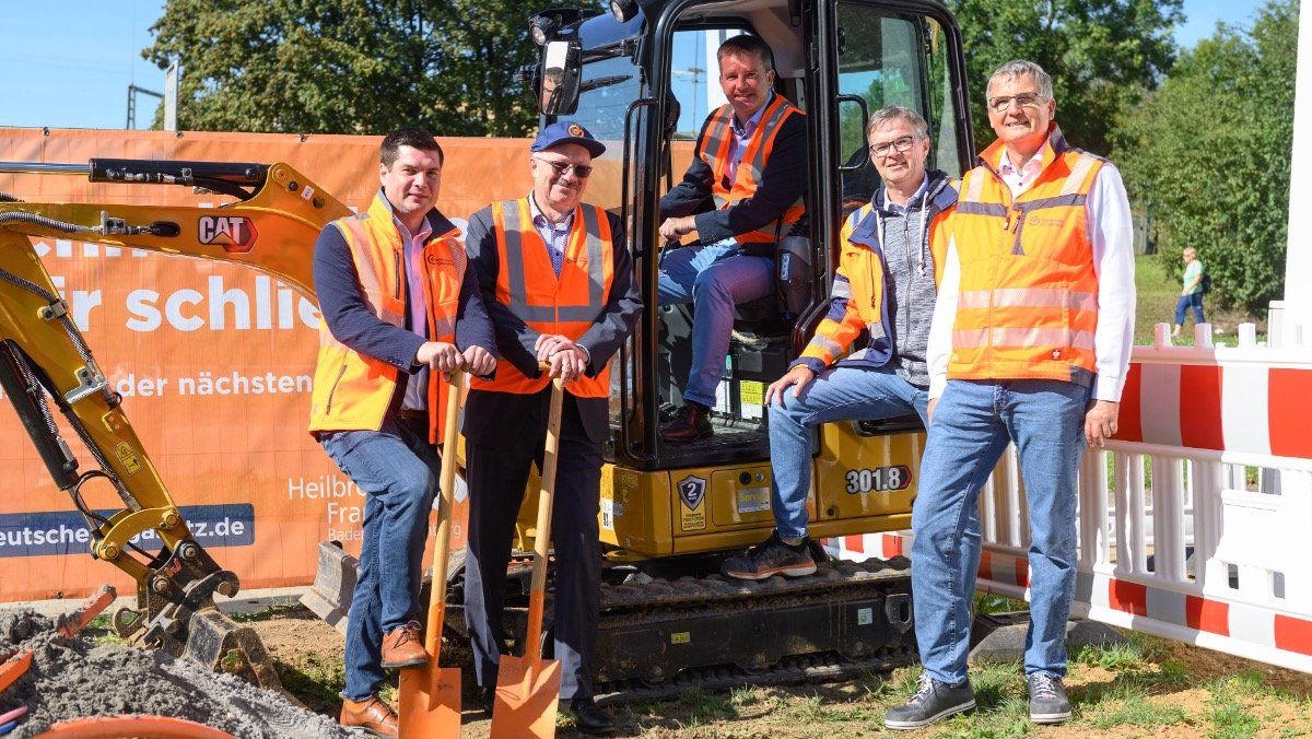 Der nächste Meilenstein ist vollbracht, denn gestern ist in Öhringen die Bauphase für das neue Glasfasernetz offiziell mit einem symbolischen Spatenstich eingeläutet worden. Thilo Michler, Oberbürgermeister der Stadt, Dr. Andreas Schumm, Geschäftsführer der Wirtschaftsregion Heilbronn-Franken GmbH sowie Vertreter/innen des für den Ausbau verantwortlichen Unternehmens, die Deutsche GigaNetz GmbH, waren mit dabei, um den offiziellen Startschuss am Großenhainer Ring in Öhringen zu geben.